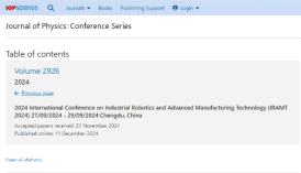 所有的投稿都必須經(jīng)過2-3位同行專家評審,經(jīng)過嚴格的審稿之后,最終所有錄用的論文將在Journal of Physics: Conference Series (ISSN: 1742-6596)出版,出版后將提交EI Compendex和Scopus檢索。(檢索非常穩(wěn)定,往屆已見刊檢索)