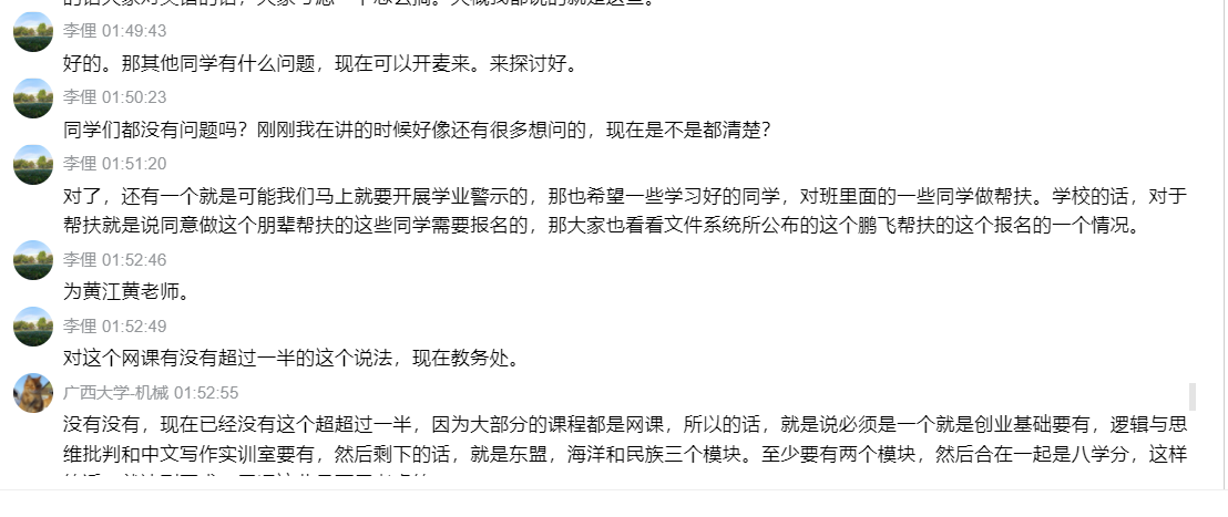 本次報告會歷時近3個小時,在報告會的最后階段,同學們就轉專業(yè)、推免、修網課、重修課程、工程訓練安排、高級英語修讀要求等自己關心的問題與教學副院長、教學辦的老師進行了充分的探討,。