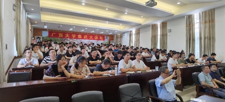 與會人員與機(jī)械工程學(xué)院的全體研究生共同參加了廣西大學(xué)君武大講壇,中國工程院院士、中國機(jī)械工程學(xué)會機(jī)械設(shè)計分會主任委員譚建榮院士以“智能制造與智能裝備:關(guān)鍵技術(shù)與發(fā)展趨勢”為主題,從智能產(chǎn)品與裝備的重要性、內(nèi)涵特征、十大關(guān)鍵技術(shù)、典型發(fā)展方向、近期突破重點和發(fā)展政策建議六個方面對與會人員及機(jī)械學(xué)院研究生作了精彩學(xué)術(shù)報告。