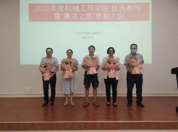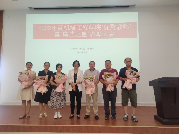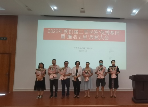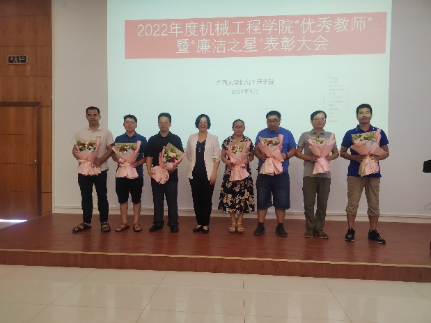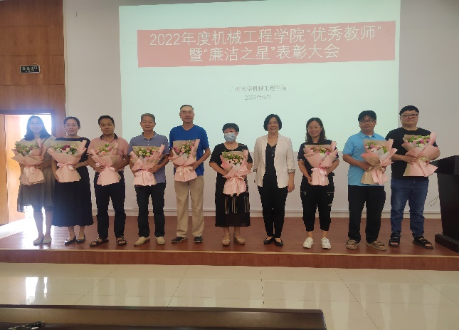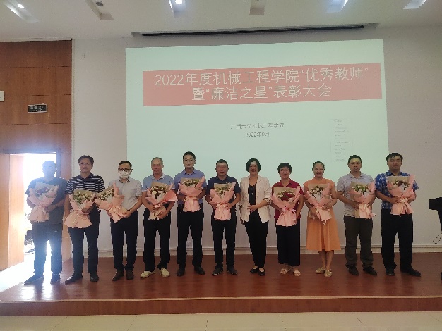 會(huì)上,院黨委書記盧嬋江宣讀了《關(guān)于表彰2022年度機(jī)械工程學(xué)院“優(yōu)秀教師”、“廉潔之星”、“廉潔家訓(xùn)”的決定》?!稕Q定》授予蒲明輝等49位同志2022年度機(jī)械工程學(xué)院“優(yōu)秀教師”榮譽(yù)稱號(hào)。學(xué)院領(lǐng)導(dǎo)為獲獎(jiǎng)的教職工頒發(fā)榮譽(yù)證書和鮮花,大會(huì)最后由盧嬋江書記作總結(jié)發(fā)言。盧書記首先代表學(xué)院黨委對(duì)獲獎(jiǎng)的全體教職員工表示了熱烈祝賀,同時(shí)對(duì)全院上半年的工作表現(xiàn)和所取得的成績(jī)給予了充分肯定,對(duì)學(xué)院下半年迎接教育部審核預(yù)評(píng)估、教育部工程教育認(rèn)證中期考核以及教育廳的專業(yè)認(rèn)證等重要工作進(jìn)行了全面動(dòng)員和工作部署。盧書記表示,機(jī)械工程學(xué)科近幾年在各級(jí)領(lǐng)導(dǎo)的關(guān)懷和支持下,在人才引進(jìn)、硬件改善、資金投入、辦學(xué)場(chǎng)地等方面得到了較大的改善,為機(jī)械工程學(xué)科的發(fā)展創(chuàng)造了更好的條件,為機(jī)械工程學(xué)院的辦學(xué)創(chuàng)造了更多的機(jī)遇。全體教職員工應(yīng)凝心聚力,聚焦人才培養(yǎng)和科學(xué)研究,努力抓住學(xué)科發(fā)展歷史新機(jī)遇,不忘初心、牢記使命,迎難而上,爭(zhēng)創(chuàng)佳績(jī),努力讓我院各項(xiàng)工作更上新臺(tái)階,爭(zhēng)取以優(yōu)異的成績(jī)迎接黨的二十大勝利召開!