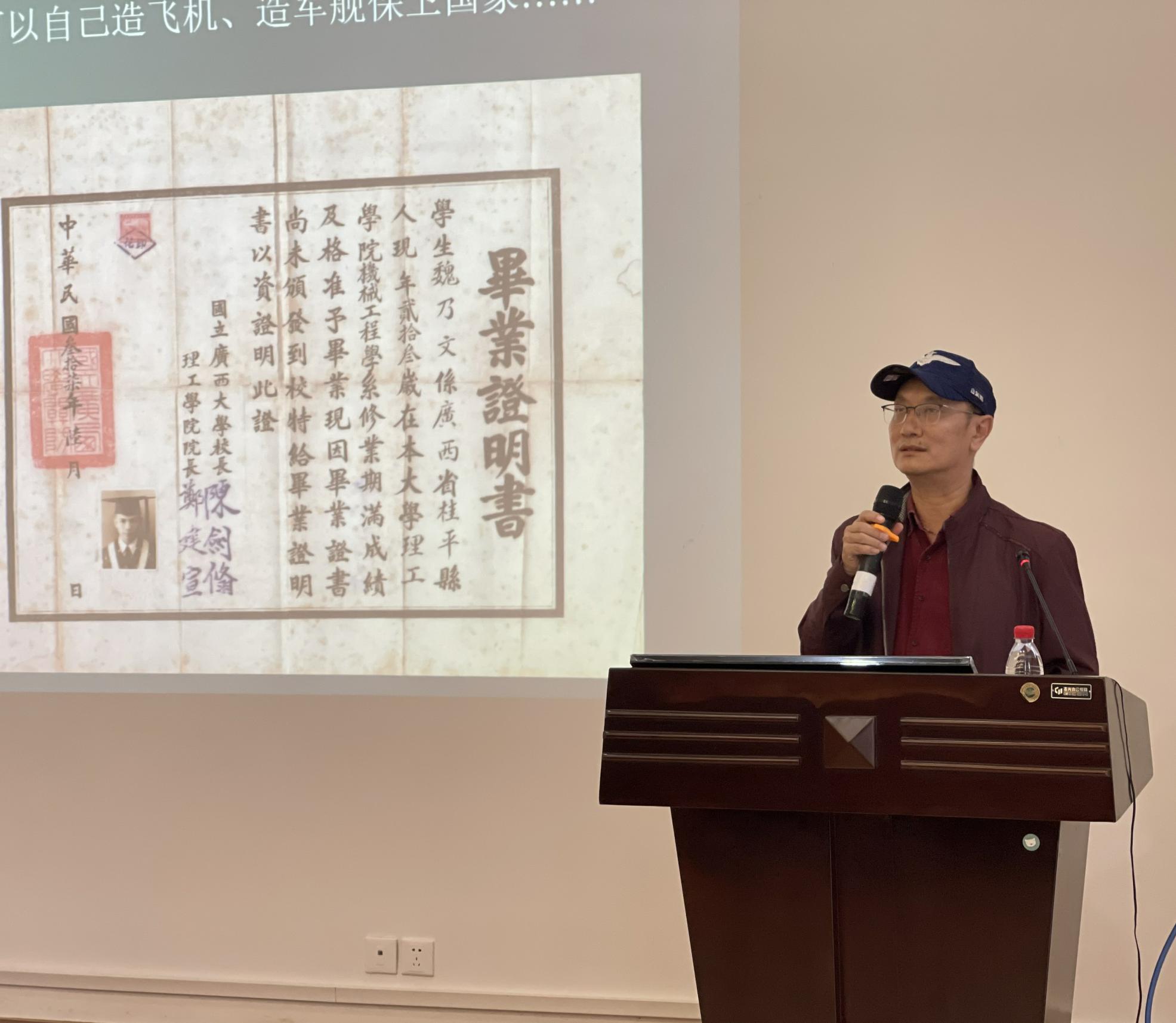 魏風(fēng)聲情并茂的跟大家分享了魏乃文老先生在戰(zhàn)亂年代的求學(xué)經(jīng)歷,以及之后隱姓埋名、奉獻了自己畢生所學(xué)研究核潛艇的壯麗篇章,并為大家展示了很多極具歷史意義老照片。魏老的故事和奉獻精神讓全院教職工都十分感動!