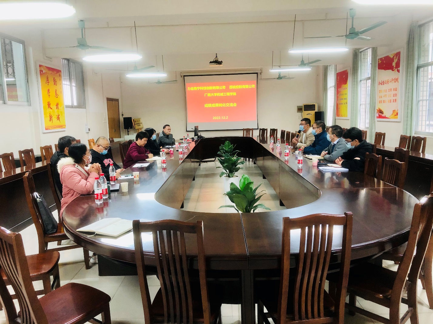 為貫徹落實(shí)黨的二十大“科教興國(guó)”國(guó)家戰(zhàn)略,助推廣西經(jīng)濟(jì)社會(huì)發(fā)展,加速和提升學(xué)院科技成果的轉(zhuǎn)化率和轉(zhuǎn)化速度,找準(zhǔn)廣西科技成果轉(zhuǎn)化的難點(diǎn)、堵點(diǎn),12月2日,機(jī)械工程學(xué)院邀請(qǐng)深圳清華大學(xué)研究院控股的力合科創(chuàng)集團(tuán)廣西分公司——力合南寧科技創(chuàng)新中心有限公司總經(jīng)理章陽(yáng),以及全國(guó)青聯(lián)常委、廣西青聯(lián)副主席、廣西青年企業(yè)家協(xié)會(huì)常務(wù)副會(huì)長(zhǎng)暨廣西廈門商會(huì)執(zhí)行會(huì)長(zhǎng),廣西百銳控股有限公司董事長(zhǎng)洪錦團(tuán)一行4人到我院就高??萍汲晒姆趸c轉(zhuǎn)化進(jìn)行座談交流。我院黨委書記盧嬋江、院長(zhǎng)尤暉、副院長(zhǎng)黃豪中、李俚以及我院科研成果團(tuán)隊(duì)代表參加座談交流。