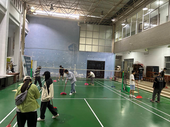 志愿服務(wù)隊分為三個小組,在組長的帶領(lǐng)下分別對機械樓一樓運動場、機二階報告廳、三樓報告廳等公共場所進行清掃。在志愿服務(wù)中,黨員同志們積極發(fā)揚不怕臟、不怕累、不怕苦的奉獻精神,擦桌子、掃地、拖地、整理運動器械……黨員同志們在整個清掃過程中既分工明確又相互配合,高效率、高質(zhì)量地完成了清掃服務(wù)工作。