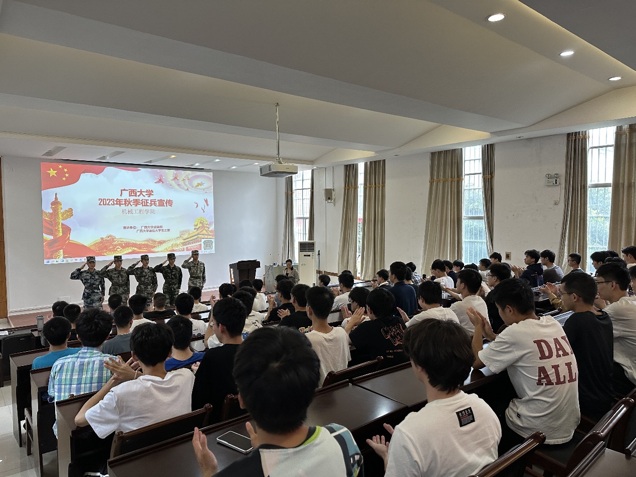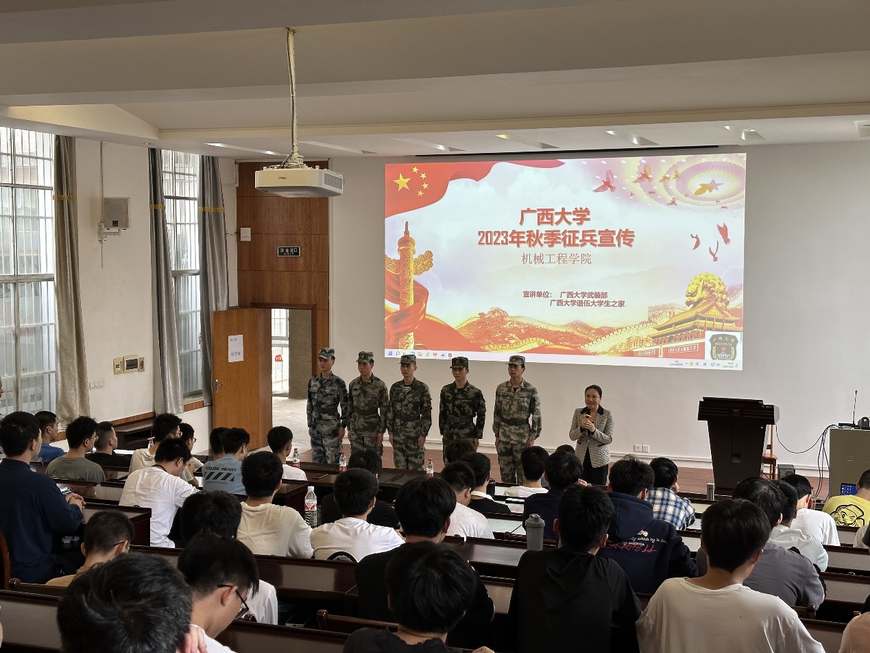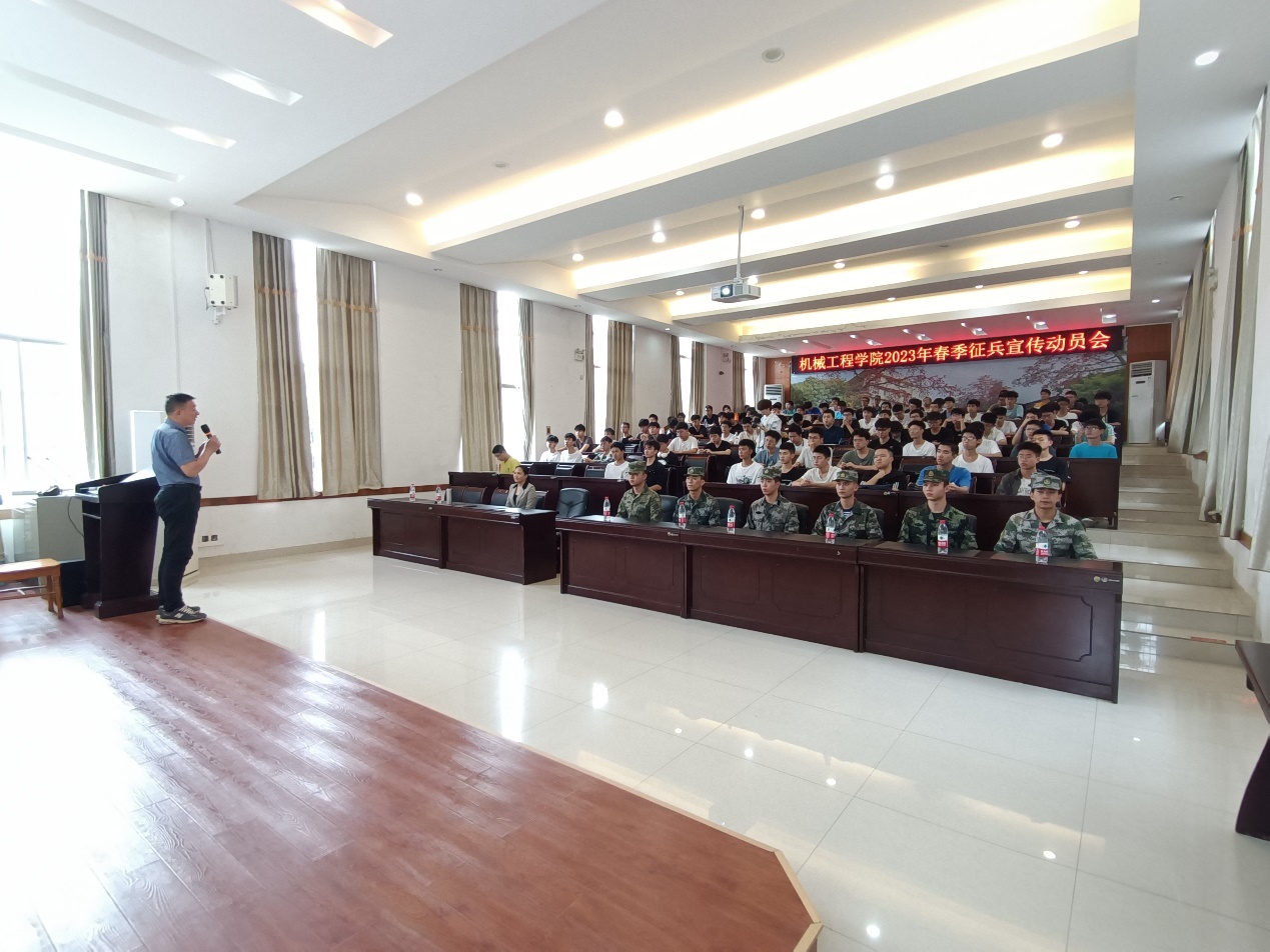 為進(jìn)一步提高征兵政策宣講覆蓋面,推進(jìn)我國國防和軍隊(duì)現(xiàn)代化建設(shè),激勵(lì)熱血青年學(xué)子應(yīng)征入伍,報(bào)效祖國。我院于5月9日在機(jī)械樓機(jī)二階舉辦征兵入伍宣講會(huì),學(xué)院黨委副書記黃路明、學(xué)校武裝部陳榕平、輔導(dǎo)員何云信、學(xué)校退伍大學(xué)生代表及我院各班級(jí)代表參加本次宣傳會(huì)。