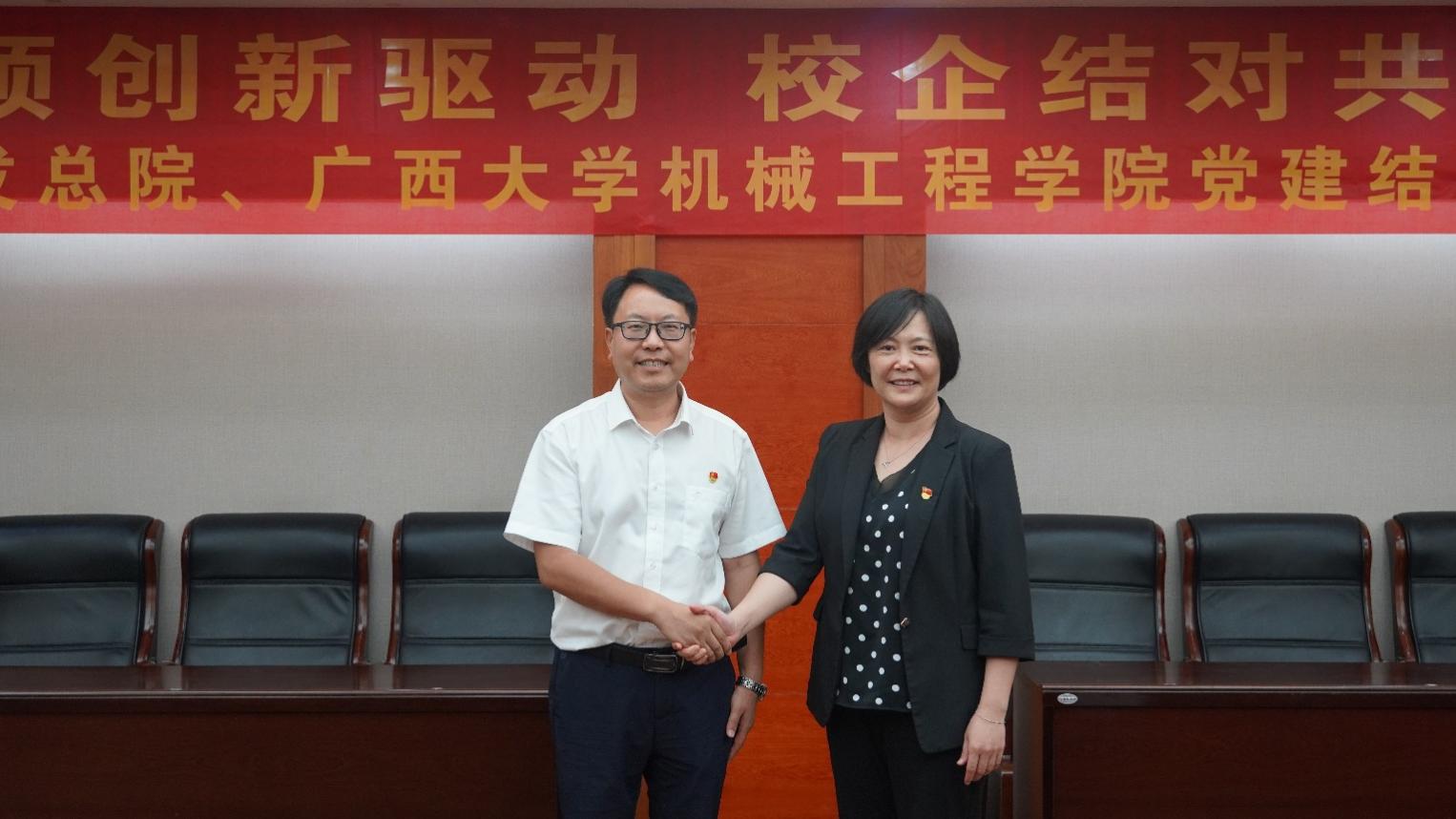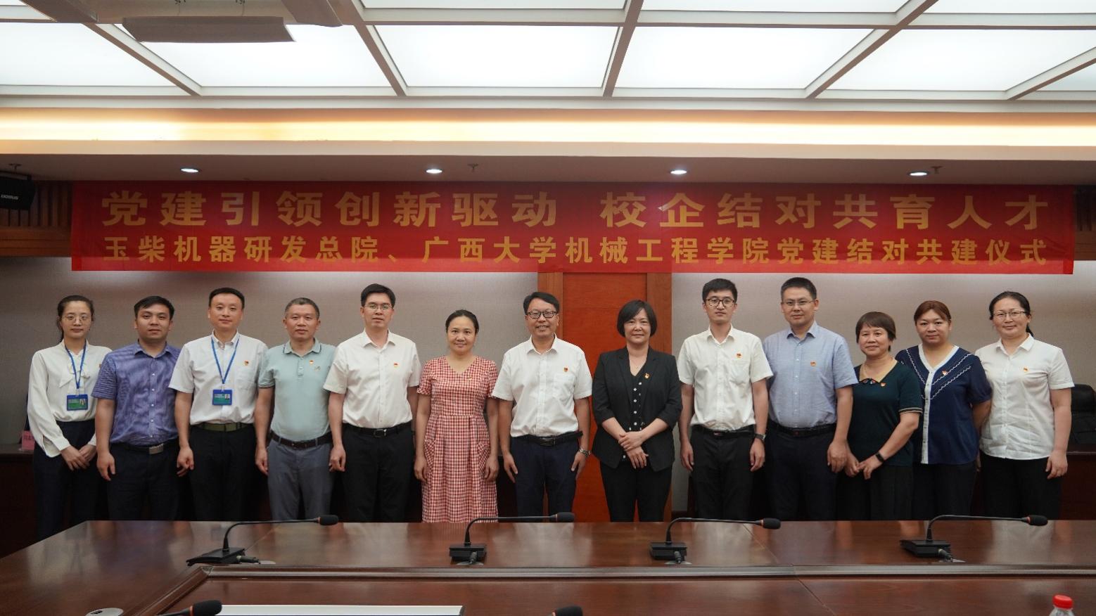 為深入開展學(xué)習(xí)貫徹習(xí)近平新時(shí)代中國特色社會主義思想主題教育,全面深化校企合作,5月22日,黨委書記盧嬋江帶隊(duì)到玉柴機(jī)器研發(fā)總院調(diào)研,并出席“黨建引領(lǐng)創(chuàng)新驅(qū)動(dòng) 校企結(jié)對共育人才”——玉柴機(jī)器研發(fā)總院-廣西大學(xué)機(jī)械工程學(xué)院黨建結(jié)對共建儀式。學(xué)院黨委副書記黃路明、副院長賀德強(qiáng)、黃豪中、李俚、高欲垚,院長助理兼能源與動(dòng)力工程系主任歐陽天成,玉柴機(jī)器研發(fā)總院黨委書記兼常務(wù)副院長寇傳富,副院長兼新材料與摩擦潤滑中心主任覃星念、黨委副書記姜博、院長助理兼中重動(dòng)力平臺部主任向本杰、院長助理兼電控與智能化中心主任葉宇、輕動(dòng)力系統(tǒng)部主任王春玲、運(yùn)營管理部副主任周益善等參加調(diào)研活動(dòng)并出席座談會暨結(jié)對共建儀式。
