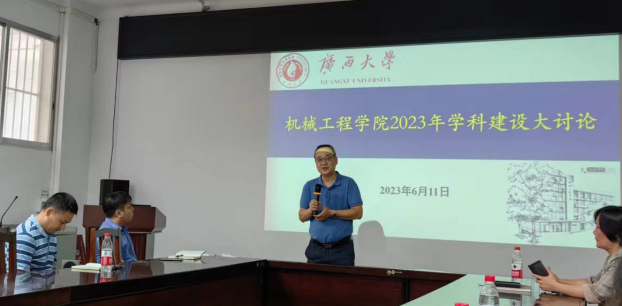 為深入開展學(xué)習(xí)貫徹習(xí)近平新時(shí)代中國(guó)特色社會(huì)主義思想主題教育調(diào)研,助推我院學(xué)科高質(zhì)量發(fā)展,學(xué)院班子于6月11日上午在機(jī)械樓第一會(huì)議室組織召開“機(jī)械工程學(xué)院2023年學(xué)科建設(shè)大討論”,圍繞如何更好地統(tǒng)籌利用學(xué)院有限的科研資源推動(dòng)亞熱帶智能農(nóng)機(jī)特色學(xué)科方向發(fā)展廣泛聽取專任教師的建議意見。會(huì)議由學(xué)院黨委書記盧嬋江主持,院長(zhǎng)尤暉、常務(wù)副院長(zhǎng)蒙艷玫、副院長(zhǎng)李俚、副院長(zhǎng)賀德強(qiáng)、副院長(zhǎng)黃豪中等學(xué)院領(lǐng)導(dǎo)班子成員、全院學(xué)科負(fù)責(zé)人、學(xué)術(shù)骨干和專任教師等40多人參加研討。