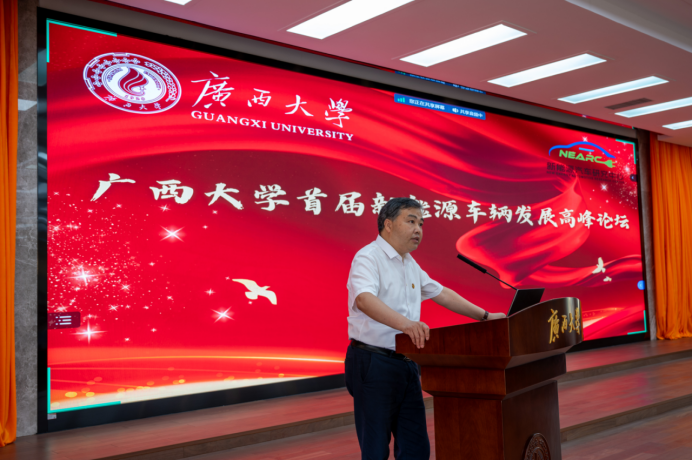 為聚焦國(guó)際新能源車輛領(lǐng)域前沿創(chuàng)新技術(shù),推動(dòng)產(chǎn)學(xué)研融合發(fā)展,7月7日上午,由廣西大學(xué)主辦,廣西大學(xué)新能源汽車研究中心(機(jī)械工程學(xué)院)承辦的“廣西大學(xué)首屆新能源車輛發(fā)展高峰論壇開幕式暨新能源車輛先進(jìn)動(dòng)力系統(tǒng)技術(shù)論壇”在君武館玉林廳成功召開。
