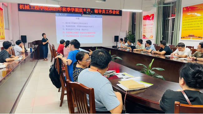 為加強(qiáng)班主任、輔導(dǎo)員隊伍建設(shè),提高本科教育教學(xué)質(zhì)量,促進(jìn)學(xué)生全面發(fā)展,9月5日晚,學(xué)院召開了2023年秋季學(xué)期班主任、輔導(dǎo)員工作會議。學(xué)院黨委書記盧嬋江、黨委副書記黃路明、副院長李俚,以及全體班主任、輔導(dǎo)員老師等參加會議。