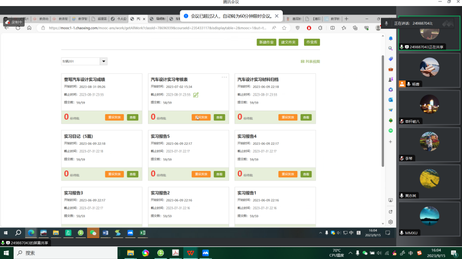 覃頻頻副教授先與系里黃亦其副教授、陸靜平副教授、黃俊明老師、李琴老師等進行了大綱修訂、課程達成度分析和存檔材料的經(jīng)驗分享和交流。而后,覃老師又分享了關(guān)于專業(yè)實習(xí)、導(dǎo)師制和車輛工程專業(yè)實驗等課程的建設(shè)經(jīng)驗,并協(xié)調(diào)安排了新進教師跟進對接相關(guān)課程,實現(xiàn)課程建設(shè)“老帶新、傳幫帶”。