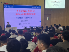 李俚副院長向同學(xué)們介紹了學(xué)院人才培養(yǎng)總目標(biāo)、畢業(yè)要求、大學(xué)學(xué)習(xí)的特點和自我管理與自我規(guī)劃的要求,勉勵大家要:學(xué)會做人、學(xué)會做事、賦能成長。李俚副院長重點解讀了學(xué)院各專業(yè)最低畢業(yè)學(xué)分的組成、通識選修課的修讀要求、學(xué)籍管理的要點以及報讀機械工程創(chuàng)新人才培養(yǎng)實驗班的政策。