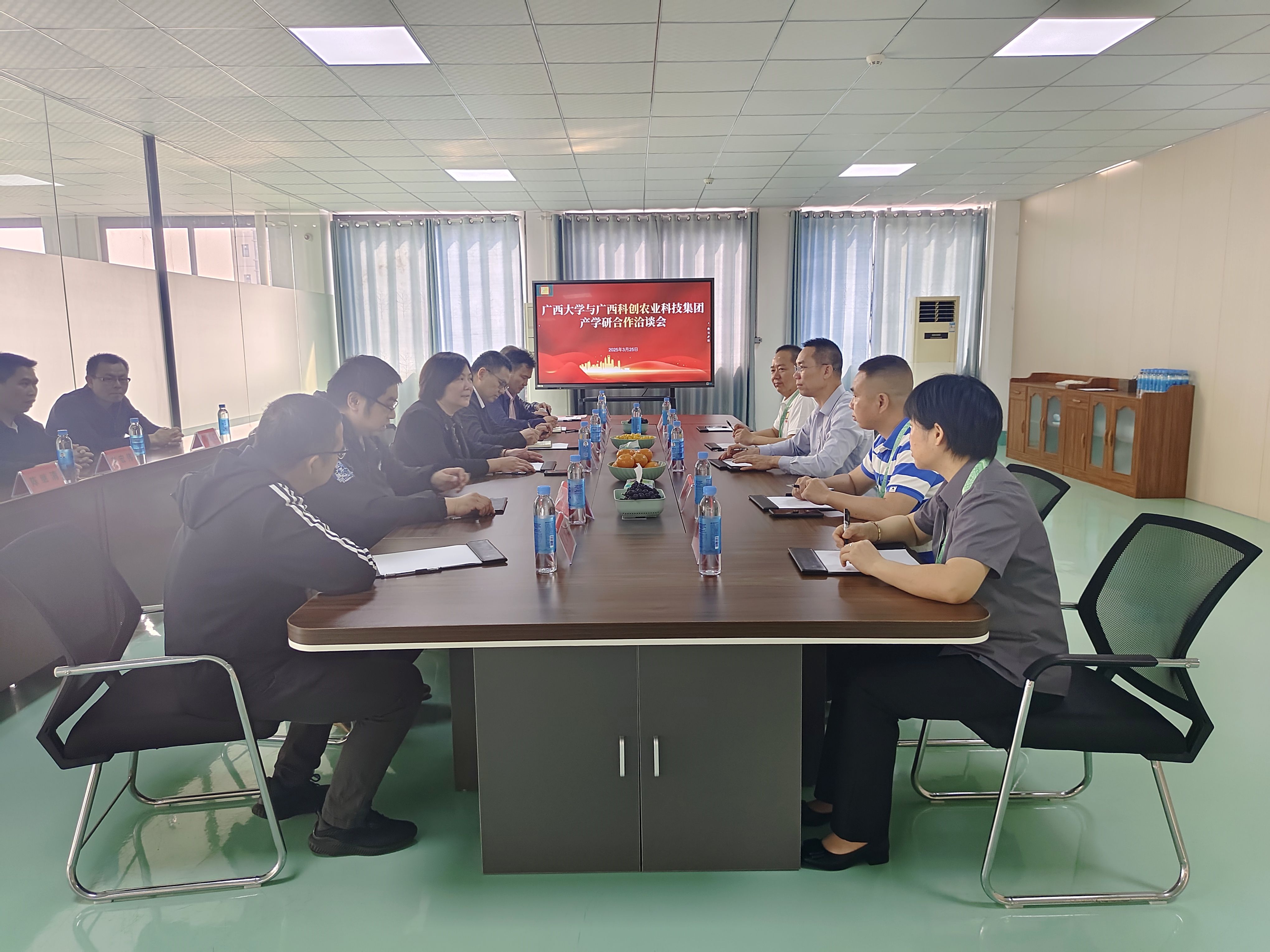 3月25日上午,院黨委書記盧嬋江、院長賀德強、校農(nóng)發(fā)院副院長湯昭、我院農(nóng)機科研團隊和電氣學(xué)院農(nóng)電團隊等一行10人赴廣西科創(chuàng)農(nóng)業(yè)科技集團有限責(zé)任公司開展調(diào)研和洽談合作。廣西科創(chuàng)董事長張勝忠、技術(shù)總監(jiān)張華偉出席活動。