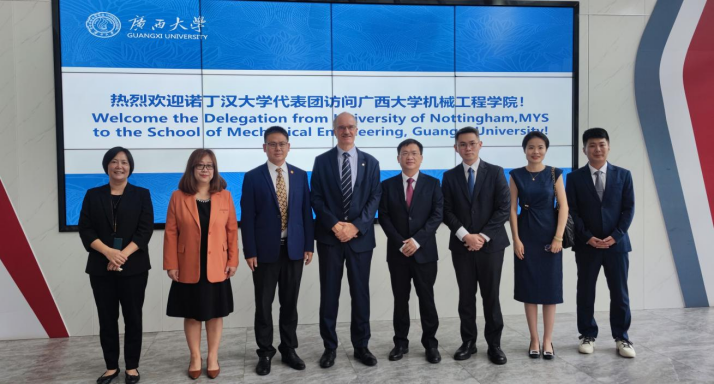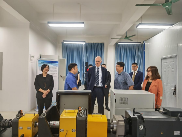 9月17日上午,英國諾丁漢大學(xué)副校長、馬來西亞分校校長兼首席執(zhí)行官大衛(wèi)·菲茨帕特里克校長(David FitzPatrick)率馬來西亞分校代表團一行五人來訪我院,廣西市長協(xié)會對外聯(lián)絡(luò)員宋益銘,校國際交流與合作處處長廖文丹、副處長郭宇路陪同參觀,一同考察工程訓(xùn)練中心智慧車間、 廣西新能源車輛動力電池與綠色動力域重點實驗室以及廣西制造系統(tǒng)與先進制造技術(shù)重點實驗室。學(xué)院黨委書記盧嬋江、院長賀德強、君武學(xué)者龍雨、能源與動力工程系主任歐陽天成、工程訓(xùn)練中心主任鄭炳年等接待來訪,秦智鵬副教授擔(dān)任翻譯。