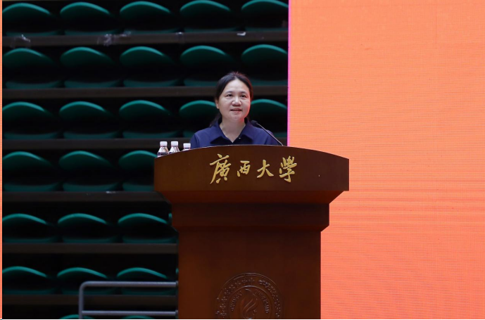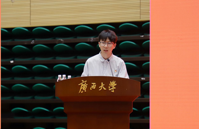 教師代表發(fā)言環(huán)節(jié),陳勇教授代表全體教師向同學(xué)們致以熱烈的歡迎,并對大家寄予深切期望。他指出,機(jī)械工程作為支撐大國重器的核心力量,是書寫機(jī)械智能強(qiáng)國故事的關(guān)鍵載體,新時(shí)代的機(jī)械工程已突破傳統(tǒng)界限,與新材料、人工智能等前沿領(lǐng)域深度融合,這要求同學(xué)們成長為兼具扎實(shí)專業(yè)功底與開闊創(chuàng)新視野的復(fù)合型人才。大學(xué)是探索未知的殿堂,他希望同學(xué)們始終以嚴(yán)謹(jǐn)態(tài)度對待每一門課程、每一次實(shí)驗(yàn),在理論鉆研與實(shí)踐操作中真切感受工程之美。“同學(xué)們正生逢一個(gè)偉大的時(shí)代,廣西正處在改革發(fā)展的蓬勃進(jìn)程中。”他勉勵(lì)大家,潛心鉆研學(xué)業(yè),以專業(yè)能力回應(yīng)時(shí)代需求,用青春力量為國家建設(shè)添磚加瓦。