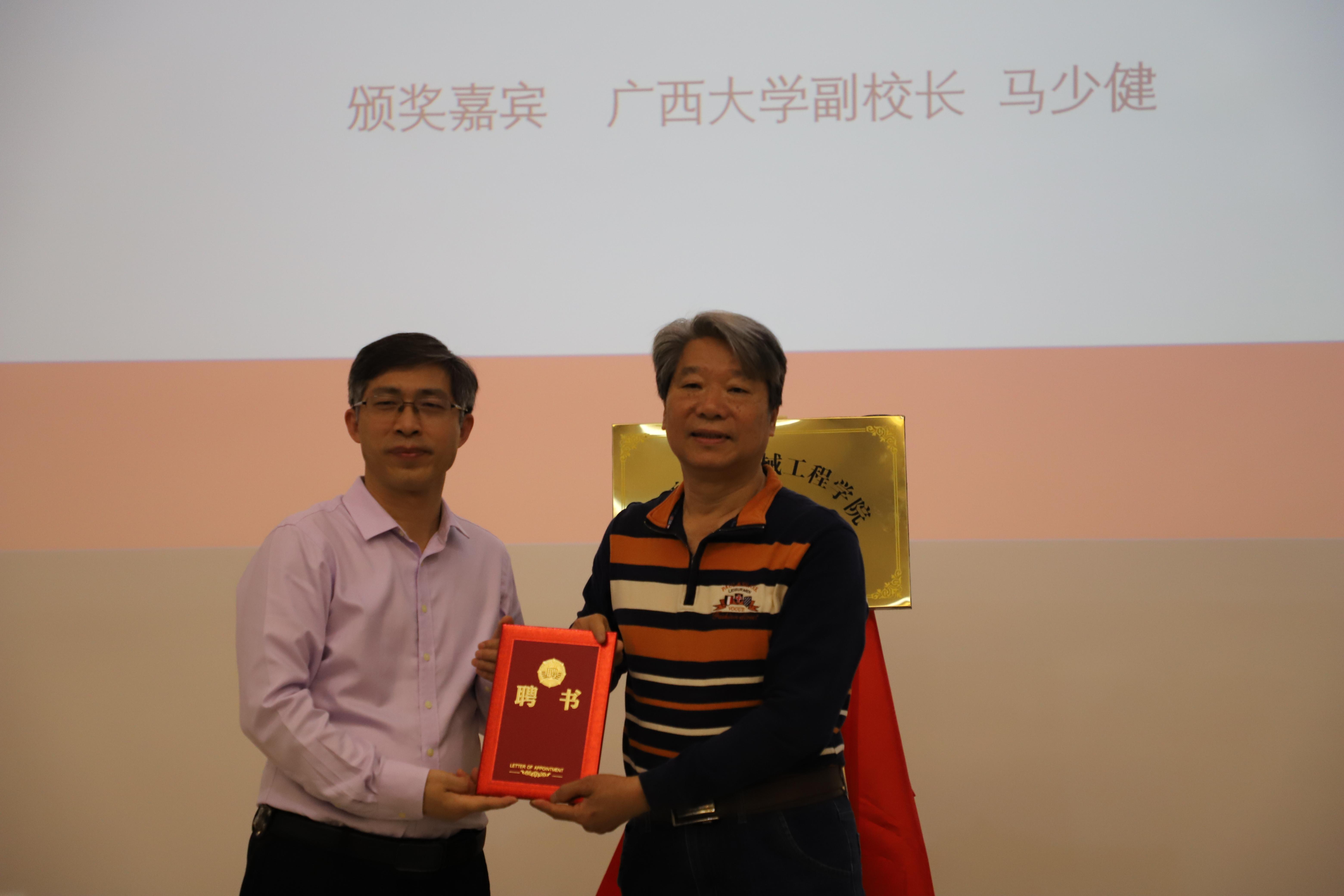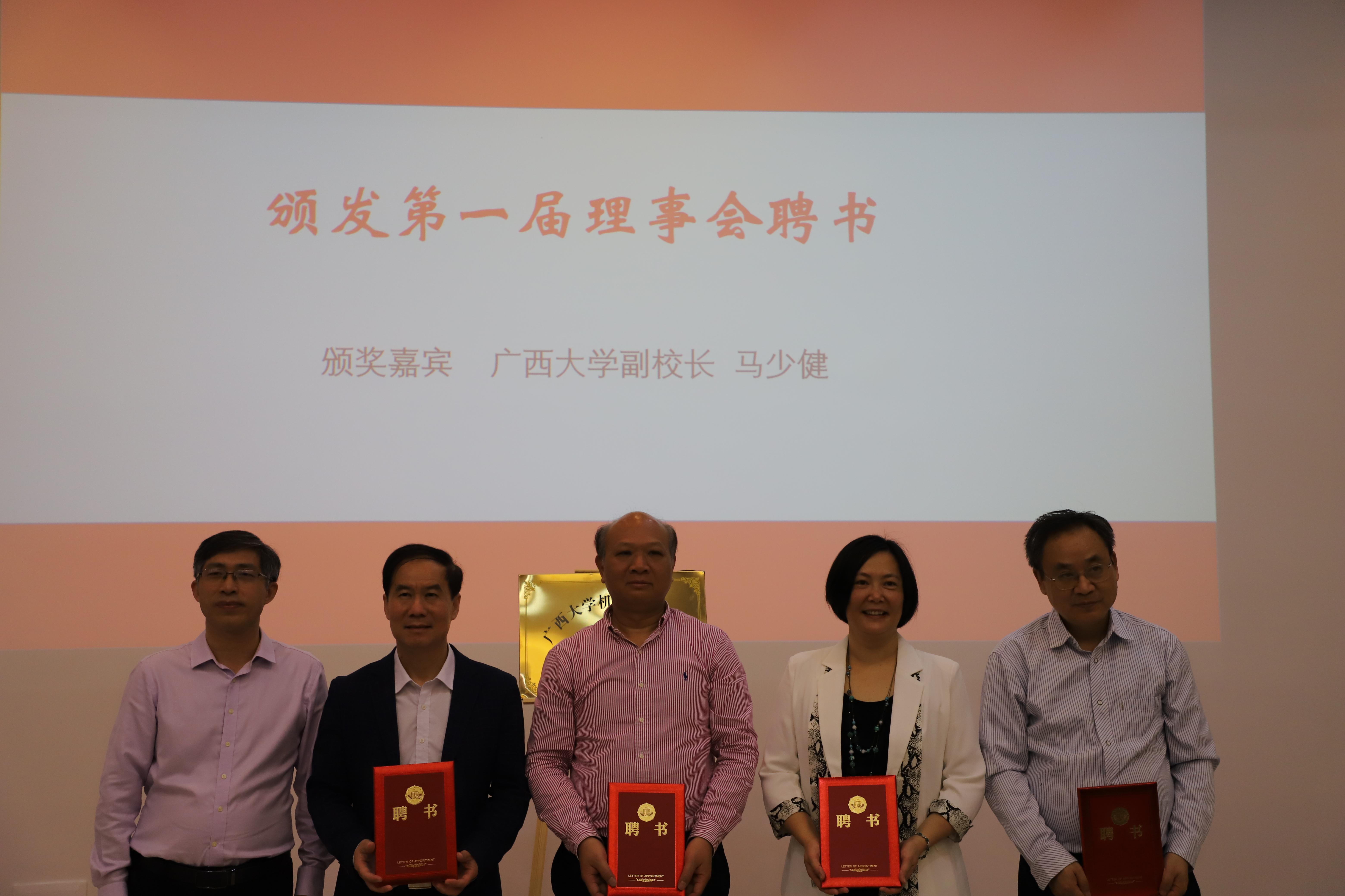校友會成立儀式暨揭牌儀式在第二階梯教室舉行。自治區(qū)政協(xié)原副主席林國強(qiáng)、自治區(qū)政府參事黃健、廣西大學(xué)原副校長毛漢領(lǐng)等120多位校友出席成立大會,廣西大學(xué)副校長馬少健代表學(xué)校出席并講話。成立大會由學(xué)院黨委書記盧嬋江主持。