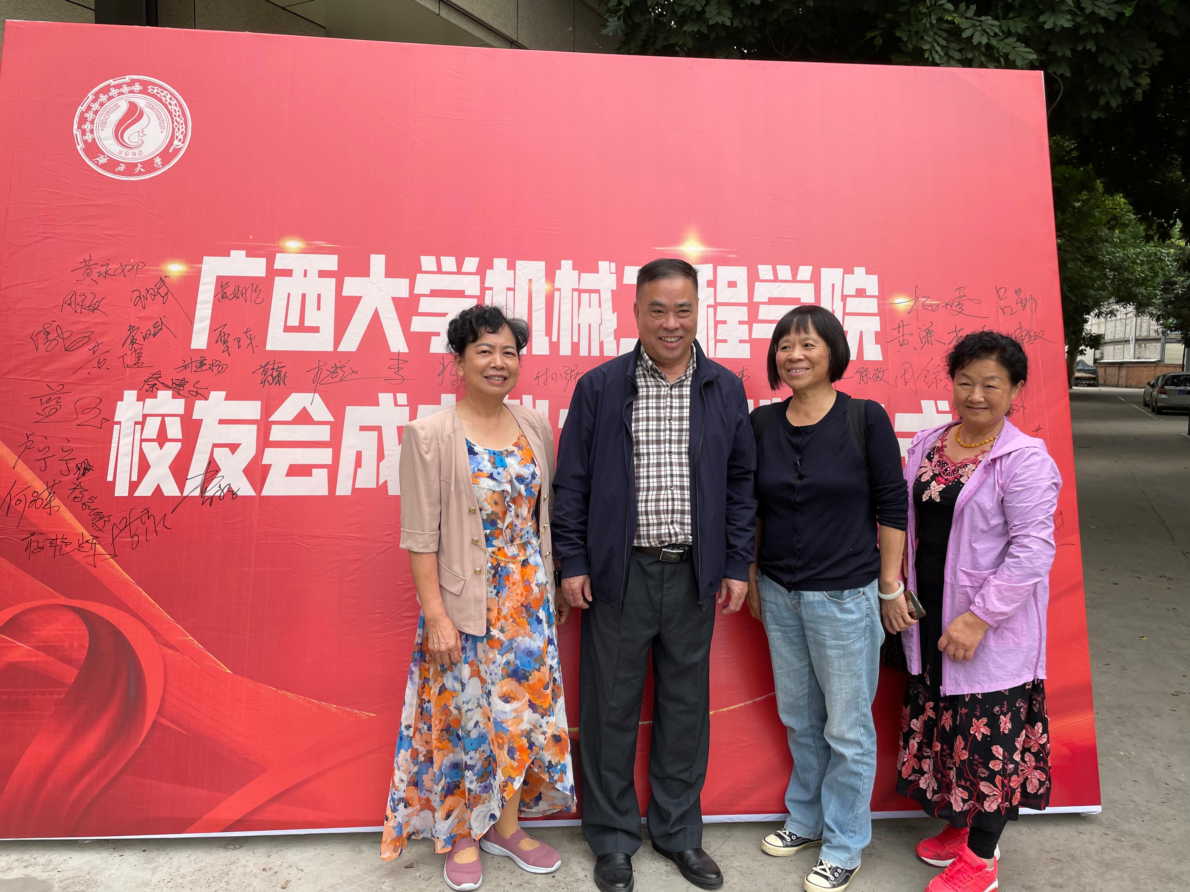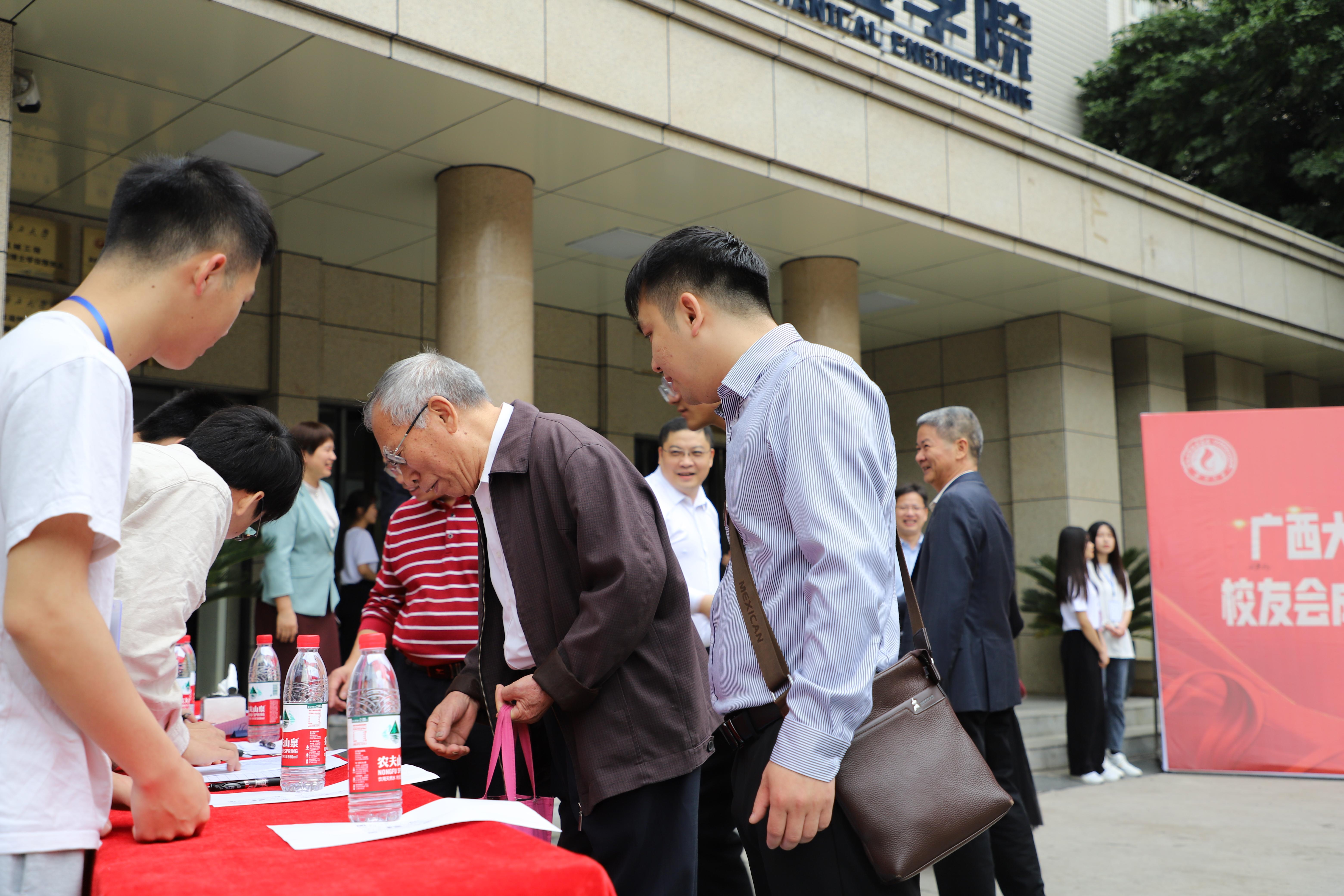 熱情的校友與退休的老教師早早就來到學(xué)院門前,重溫意氣風(fēng)發(fā)的求學(xué)時(shí)光,追憶學(xué)院當(dāng)年的模樣。不少校友是從區(qū)內(nèi)外特意趕來參會的。大家在簽名墻上寫下自己的名字,與同窗、老師合影留念。