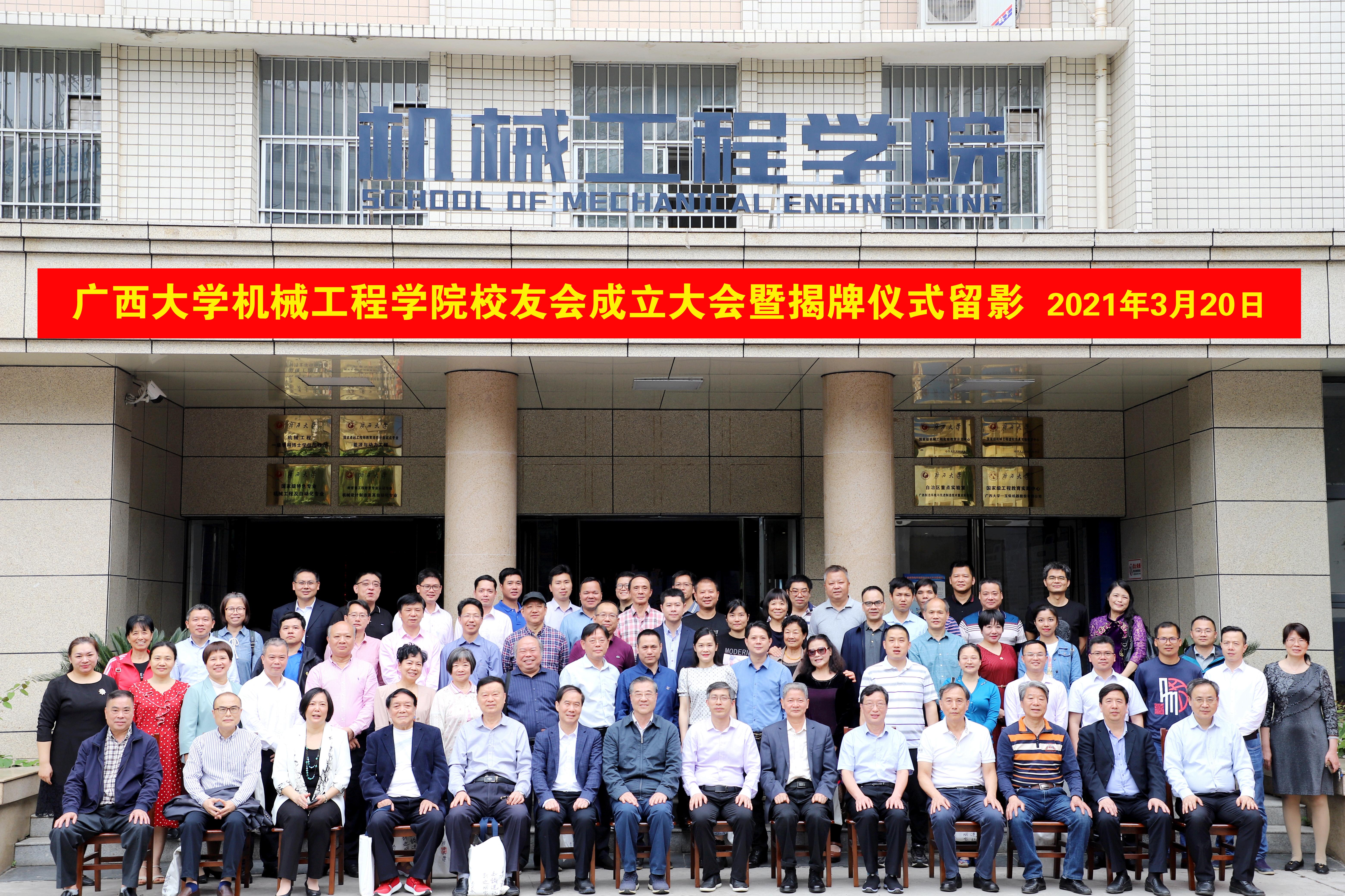 2021年3月20日,在學(xué)校及社會各界的支持與眾多校友的期盼中,廣西大學(xué)機(jī)械工程學(xué)院校友會成立儀式暨揭牌儀式在學(xué)院舉行。