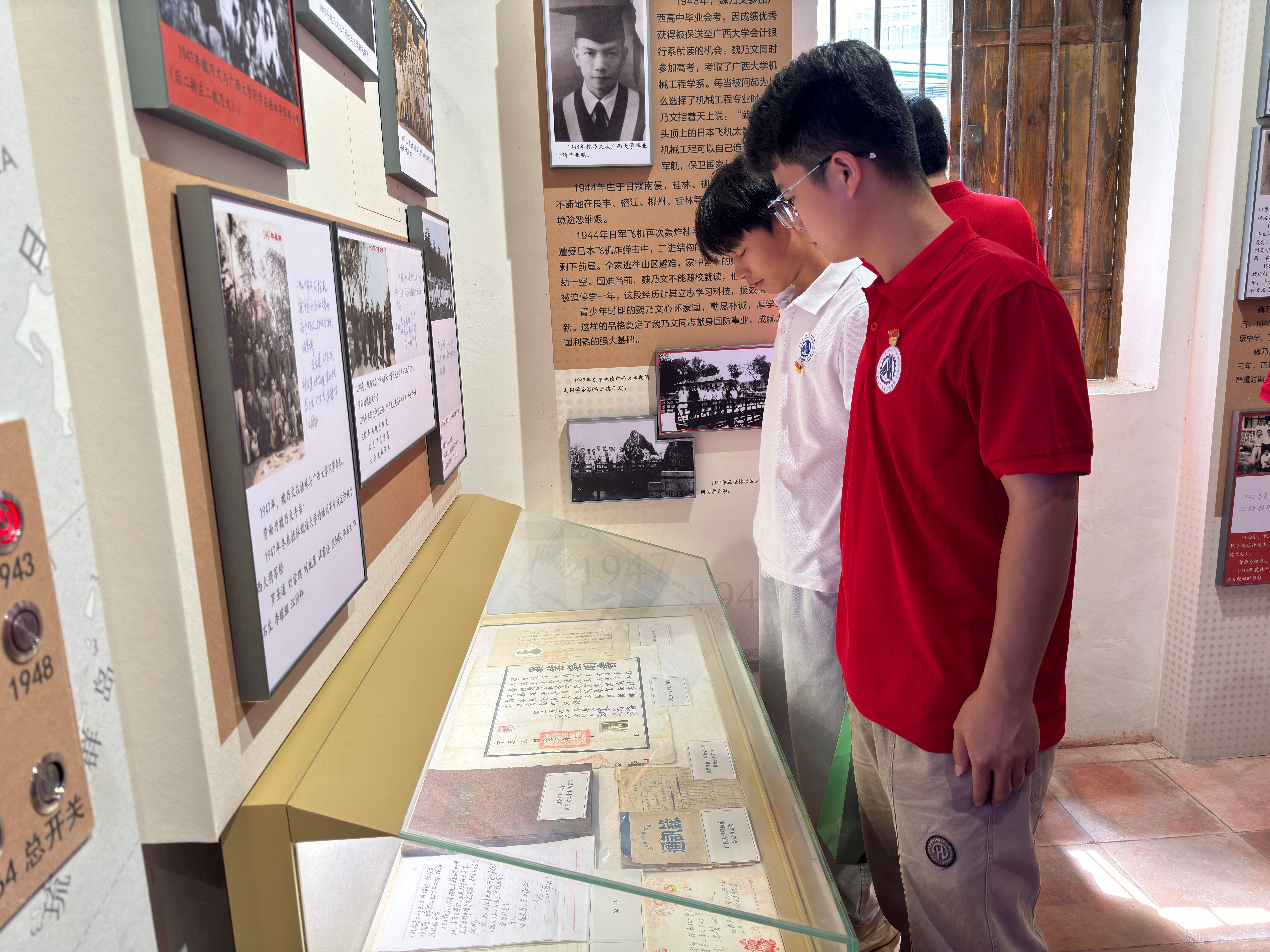 21日上午,師生黨員們首先抵達位于桂平市的廣西科學(xué)家精神基地——魏乃文故居紀(jì)念館。桂平市人大常委會副主任廖恬、桂平市政府辦公室副主任覃鴻全、桂平市博物館館長朱麗彬、魏乃文侄子魏風(fēng)等到場歡迎我院師生。魏乃文同志是中共黨員,廣西大學(xué)機械工程學(xué)院的杰出校友,我國第一代核潛艇彈道式導(dǎo)彈水下發(fā)射裝置總設(shè)計師,曾榮獲國家科技進步獎特等獎,并作為“兩彈一星”突出貢獻科技專家得到國家領(lǐng)導(dǎo)人的接見和表彰。
