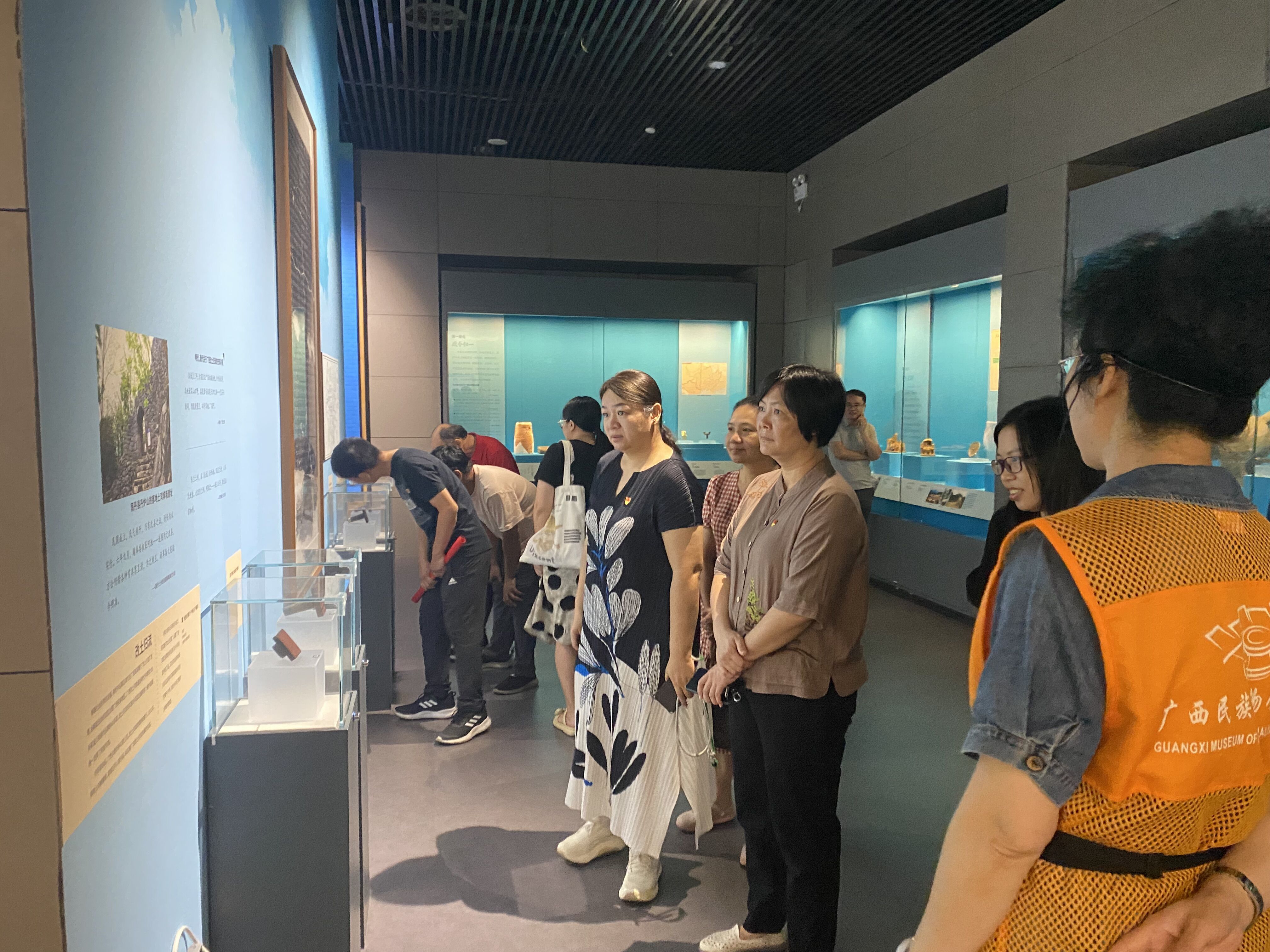 廣西民族博物館的鑄牢中華民族共同體意識歷史文化展包括“共辟遼闊疆域”、“共書悠久歷史”、“共創(chuàng)燦爛文化”、“共育偉大民族精神”四大部分內(nèi)容。通過參觀館內(nèi)珍貴的文物、文獻資料及歷史照片,大家深入了解到了廣西源遠流長的各民族團結(jié)的歷史,以及創(chuàng)造的彌足珍貴的文化財富,領(lǐng)略了各民族適應(yīng)自然、開放包容的生產(chǎn)生活智慧,既有物質(zhì)形態(tài)的多元,更有精神內(nèi)涵的一體。