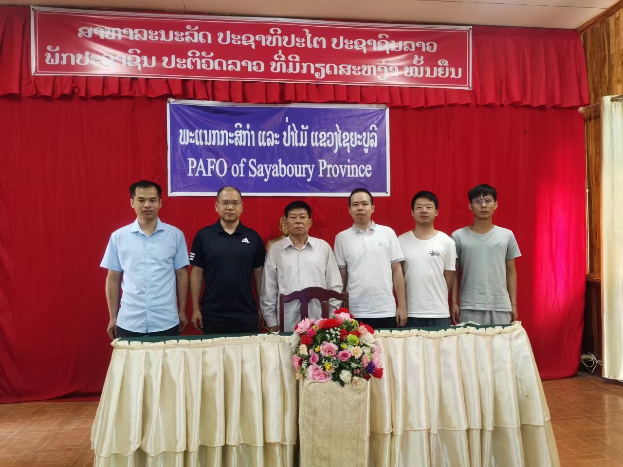 項目團隊得到老撾沙耶武里省農林廳的接待。4月24日上午,沙耶武里省農林廳副廳長KHAMKUEANG先生帶領農林廳相關部門負責人與項目團隊進行座談交流。會上,楊望副教授介紹我校在亞熱帶智能農機領域的研究以及在甘蔗、木薯、桉樹等亞熱帶主要農林經濟作物的機械化研究和應用情況。KHAMKUEANG廳長向項目團隊介紹老撾政府對農業(yè)發(fā)展的路線方針和具體舉措,并對廣西大學木薯、甘蔗、桉樹等機械化生產技術與裝備在老撾的推廣應用及技術人員國際培訓表示熱烈的歡迎。座談會后,在老撾當地項目合作單位掛牌建立“廣西大學木薯全程機械化試驗示范基地”。