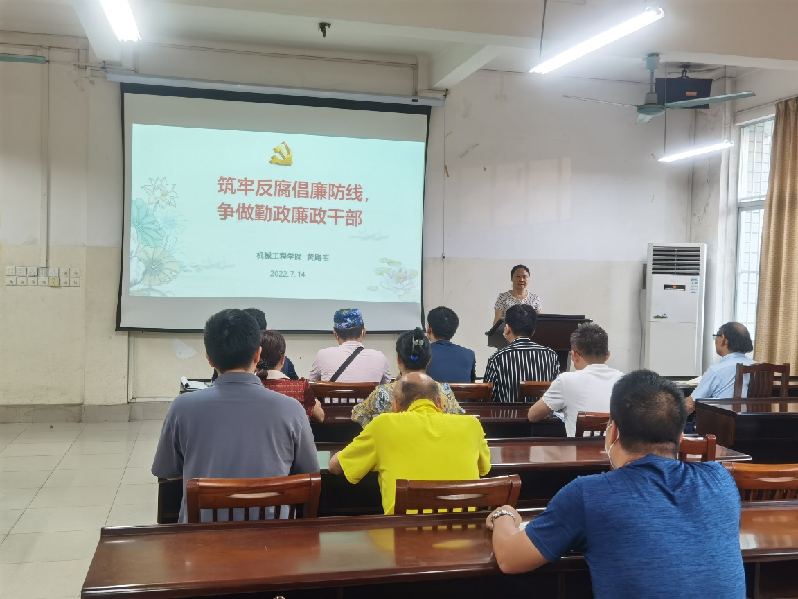 2022年7月14日下午,教工四支部在學院三樓報告廳開展黨課及主題黨日活動。學院黨委副書記、紀委書記黃路明同志為支部全體黨員上了題為“筑牢反腐倡廉防線,爭做勤政廉政干部”的專題黨課。